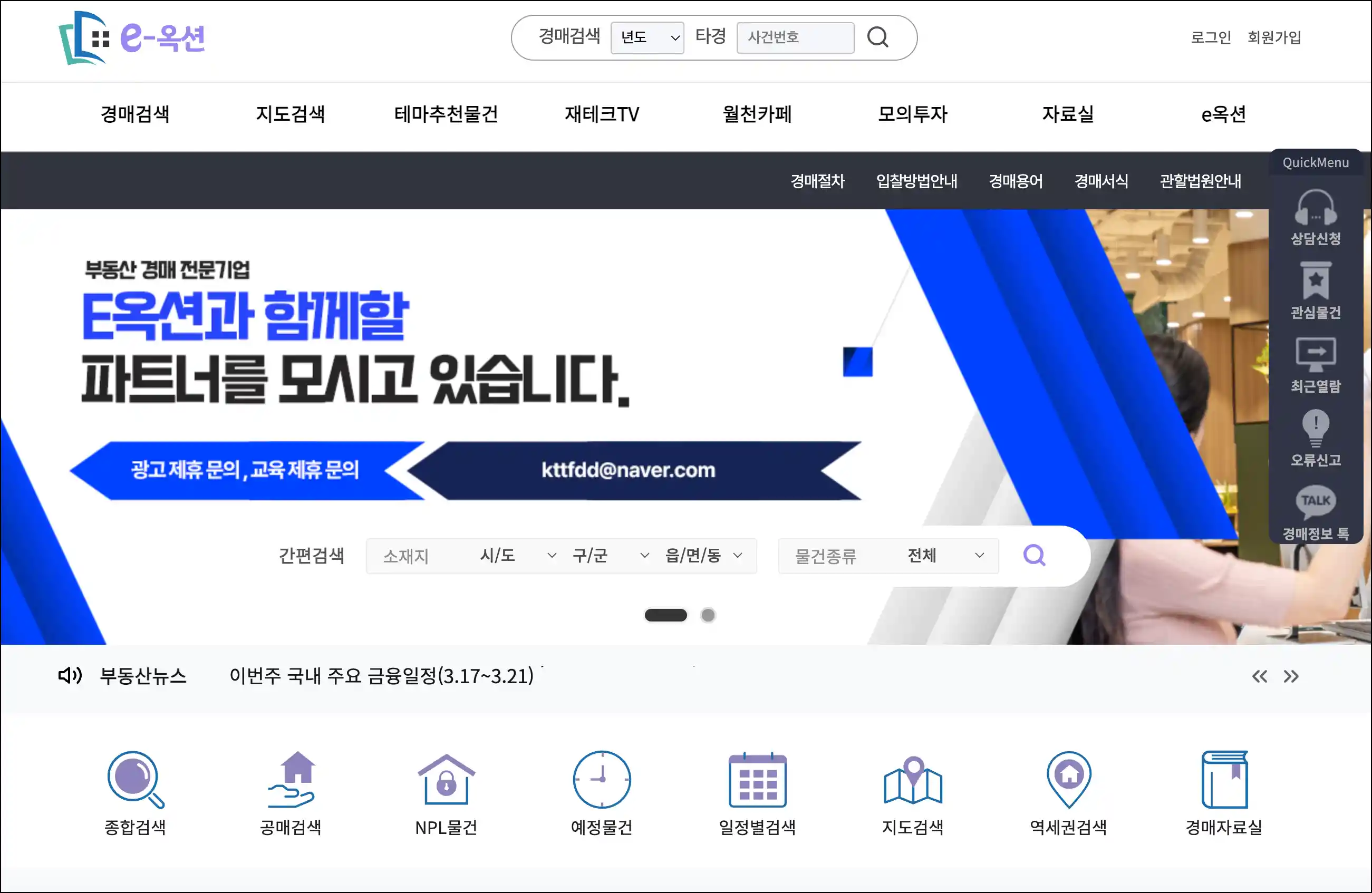 e옥션은 현재 법원에서 진행중인 부동산경매 물건을 명쾌하게 분석하고 경매 입문자를 위한 무료강의 교육영상을 유튜브에서 제공하고 있습니다.