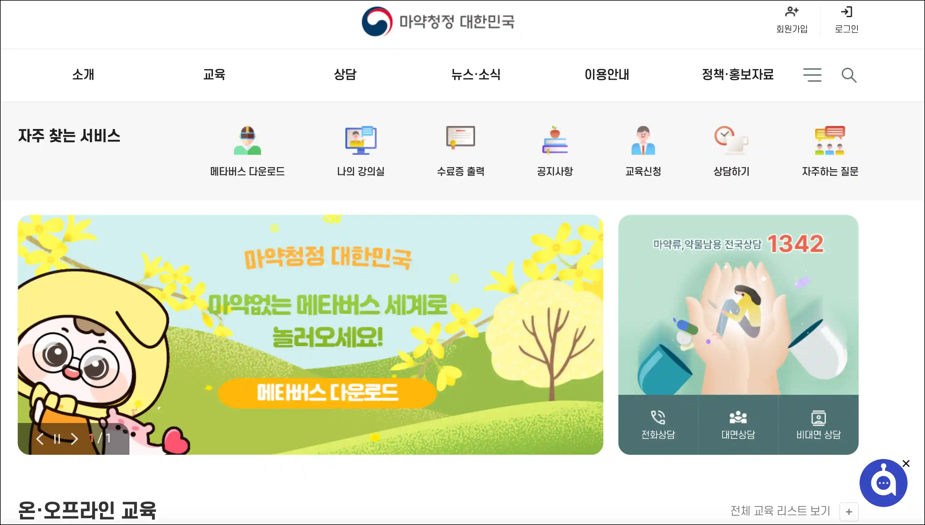 최근 마약 범죄가 사회적으로 큰 이슈가 되면서, 예방과 올바른 인식 개선의 중요성이 날로 커지고 있습니다. 이러한 시대적 흐름 속에서 식품의약품안전처는 국민이 마약류에 대한 올바른 정보를 쉽게 접할 수 있도록 ‘마약청정 대한민국’ 홈페이지를 운영하고 있습니다. 이 사이트는 교육, 정보, 신고, 정책 등을 종합적으로 안내하는 공식 포털입니다.