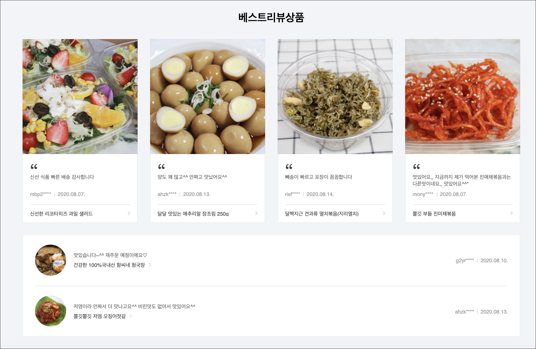 네이버 스마트스토어에서 도시곳간의 반찬을 온라인으로 주문할 수 있습니다.