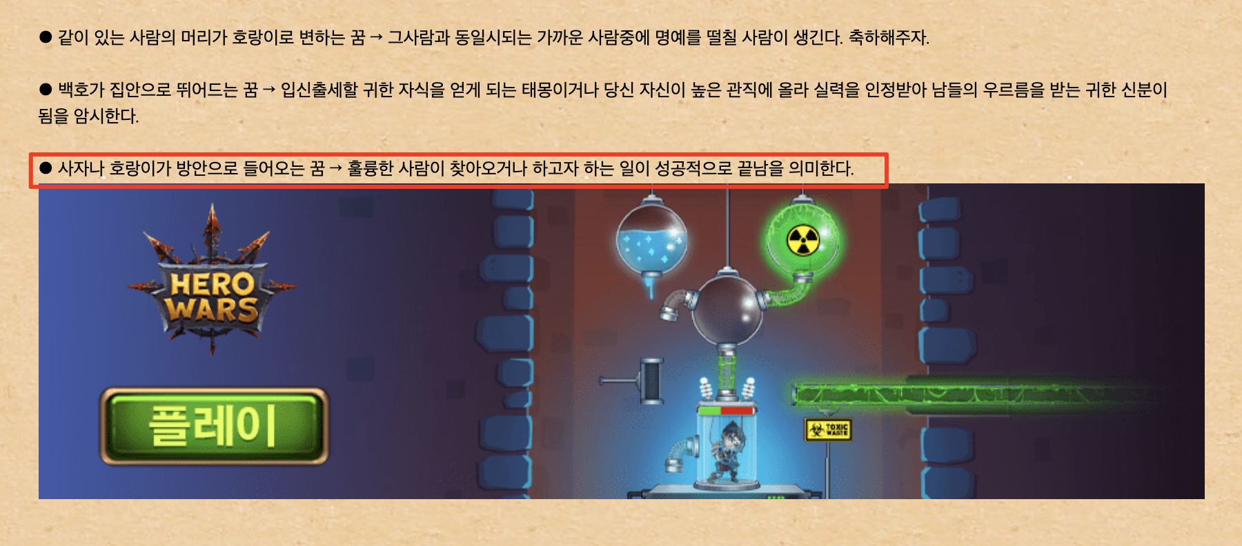 꿈해몽 - 호랑이,사자에 관한 꿈