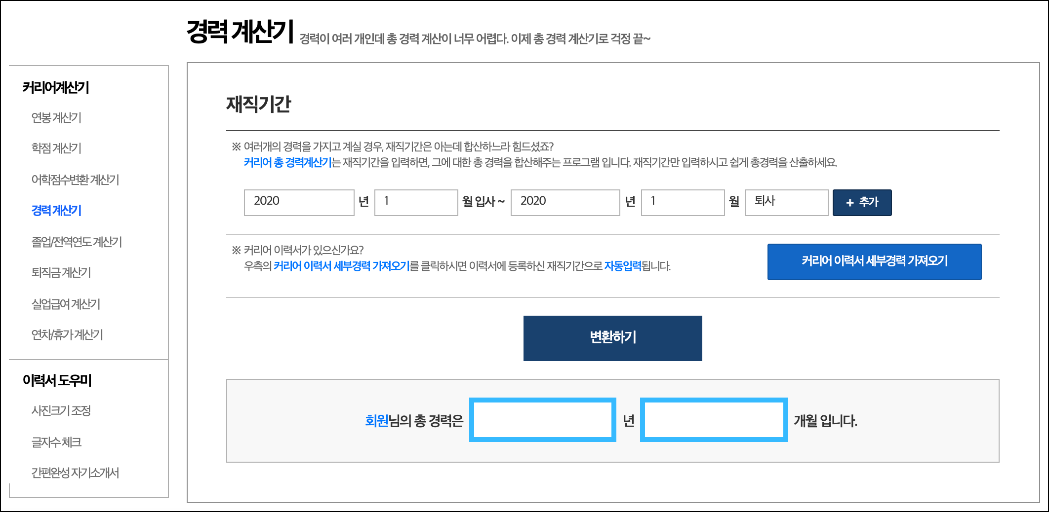 커리어 성공취업 툴(Tools) > 경력계산기