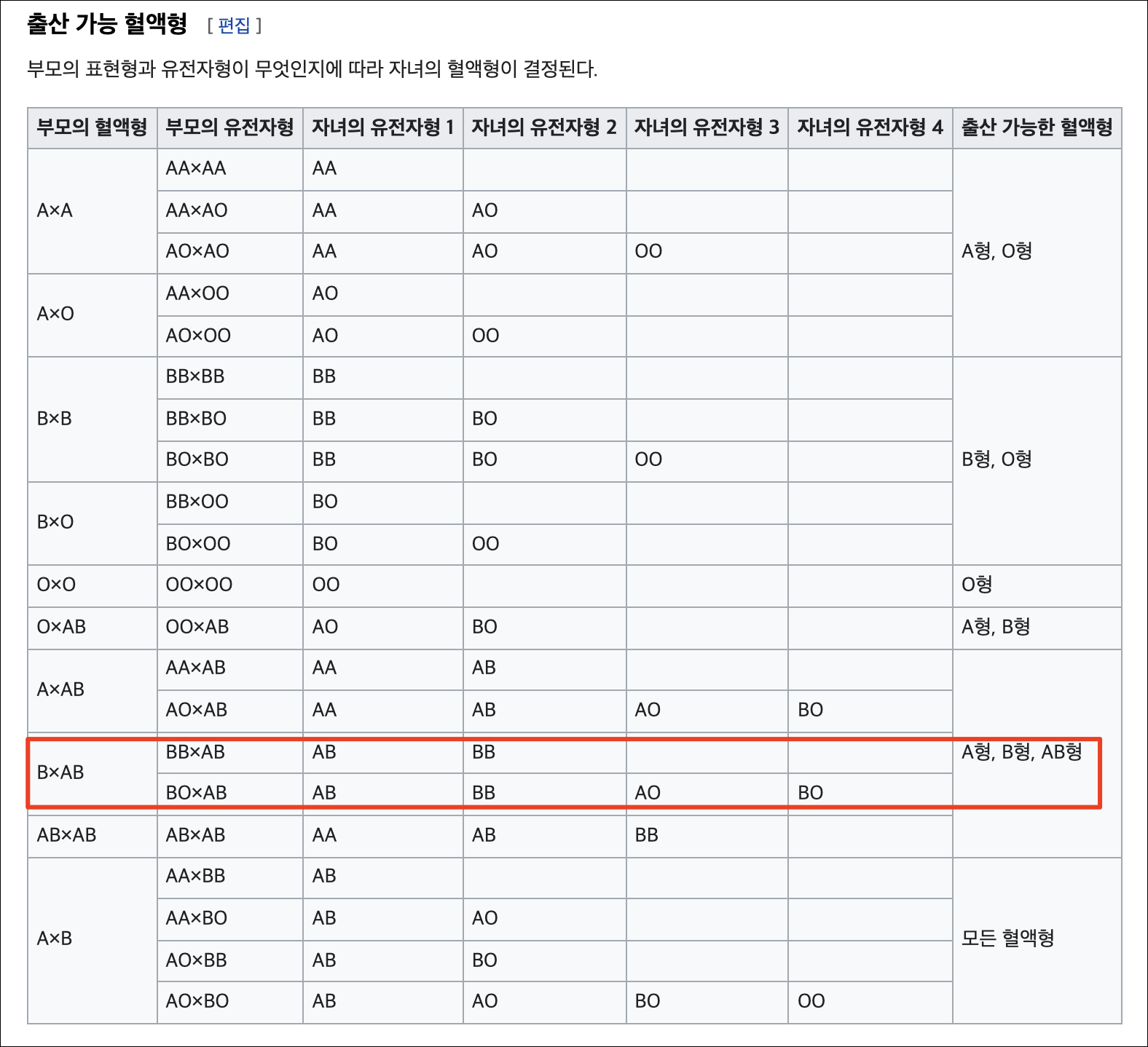 ab형 b형 사이에는 'A형, B형, AB형' 자녀가 태어날 수 있습니다.