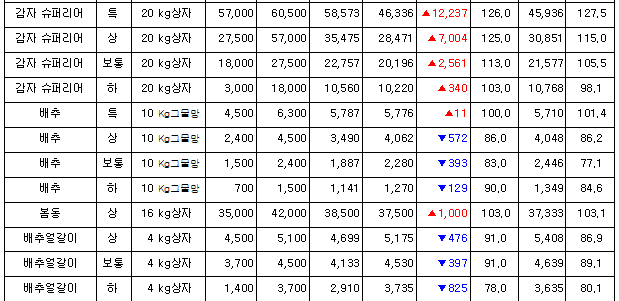 농산물 가격이 어떻게 되는지 잠깐 알아볼께요~