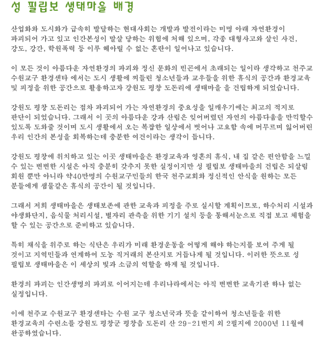 성필립보 생태마을 가는 길과 성필립보 생태마을 홈페이지를 안내 드립니다.