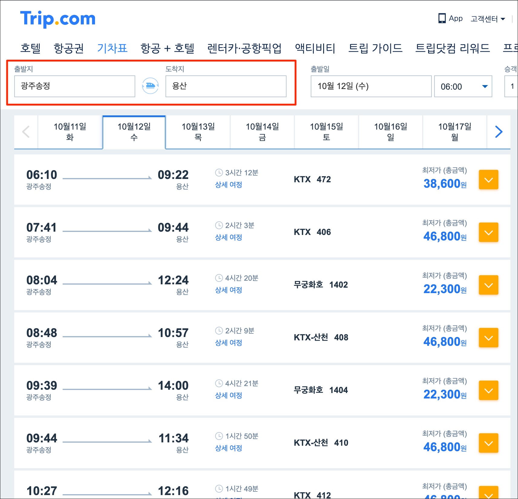 광주송정발 용산행 기차표 온라인 예약 & 배송 | 트립닷컴
