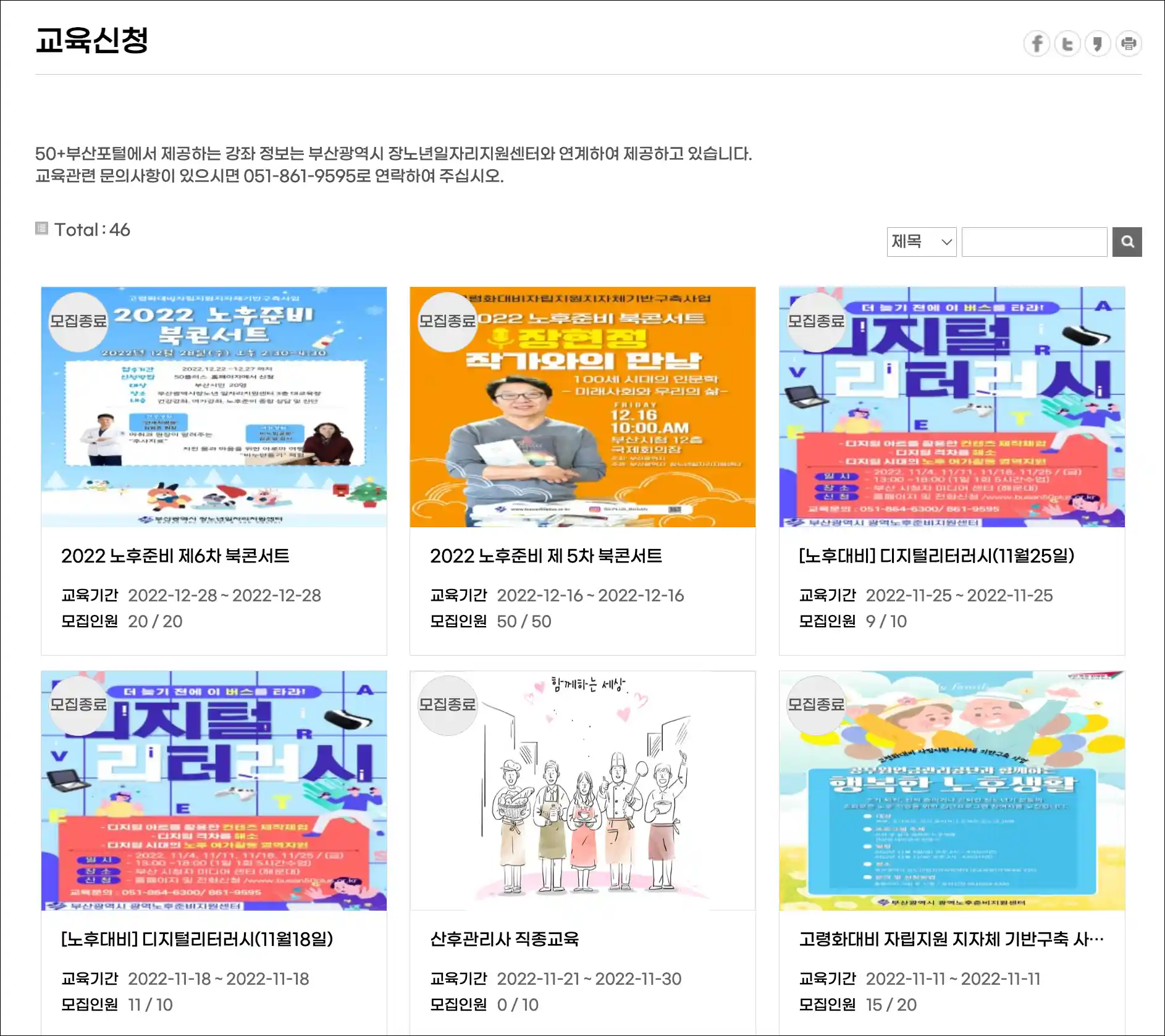 50플러스 부산포털은 50대 이상을 위한 맞춤형 교육, 여가, 취업, 차업 활동을 지원하기 위한 사이트 입니다.