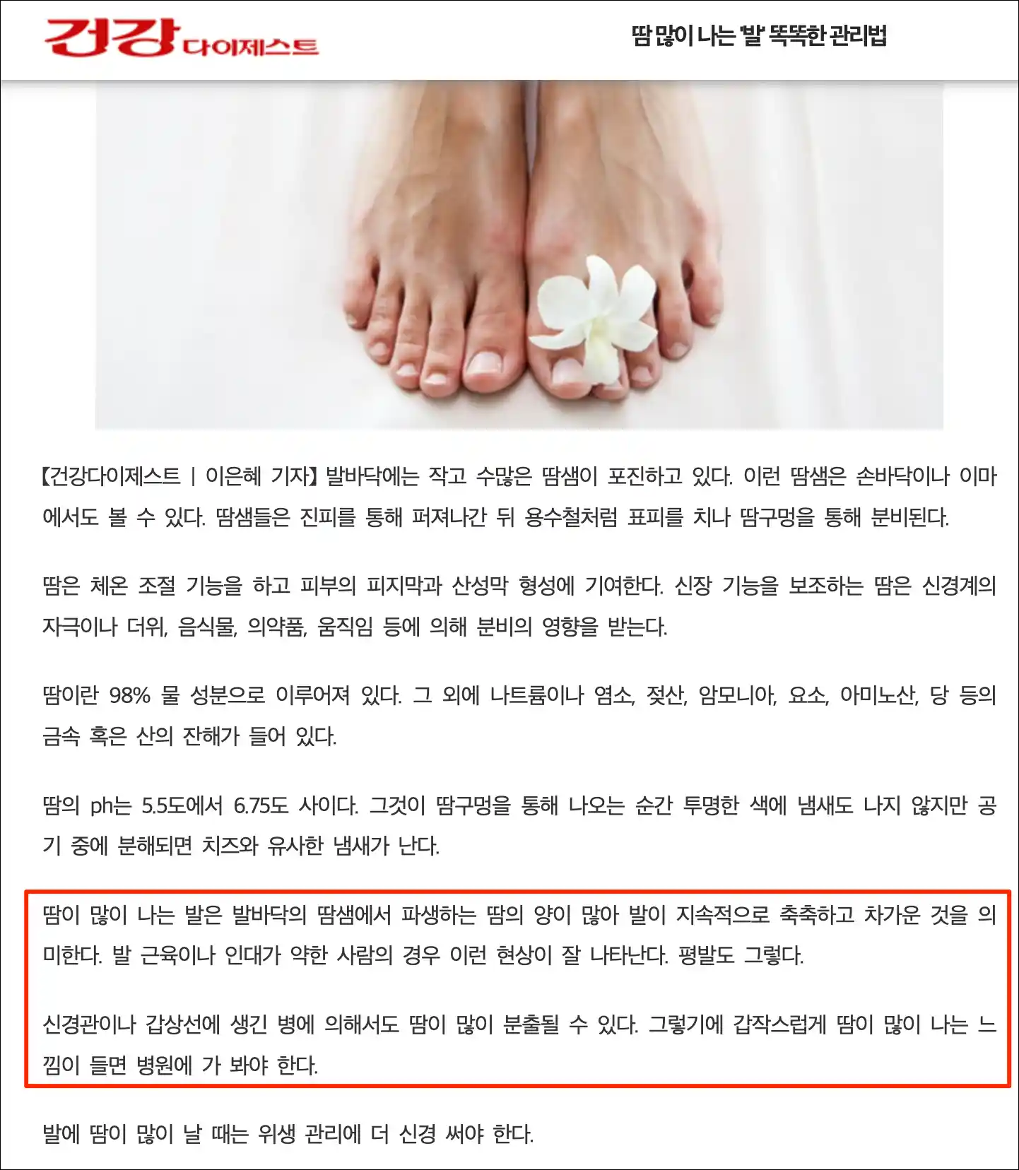 땀 많이 나는 '발' 똑똑한 관리법 - 건강다이제스트 인터넷판