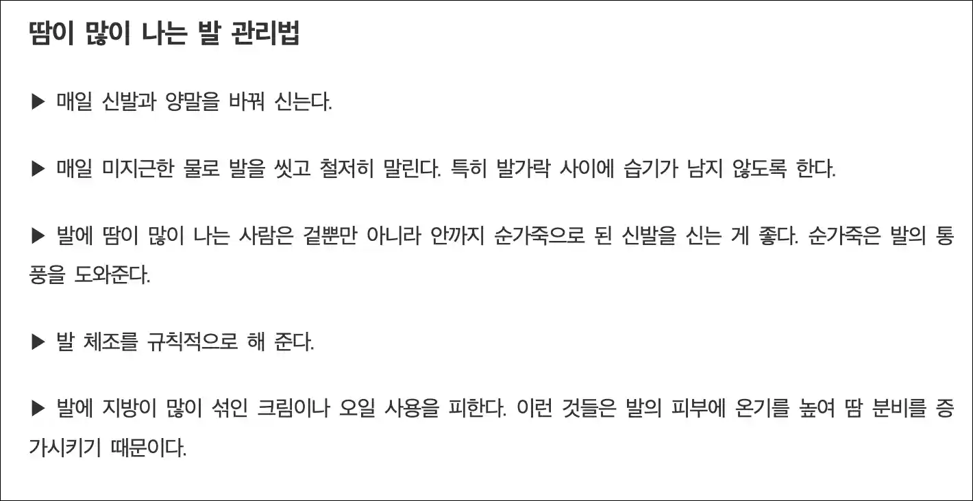 기사에서는 이런 분들을 위한 발 관리법이 소개되고 있습니다.