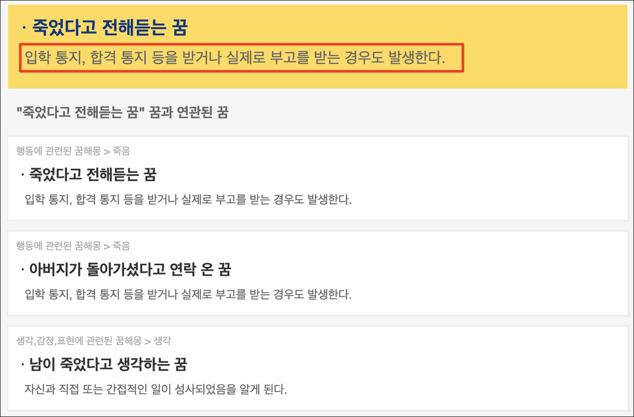 꿈 속에서 죽음의 이야기를 들은 경우, 이는 실제 인생에서의 합격 알림이나 부고와 같은 중요한 알림을 받는 경우를 나타낼 수도 있다고 합니다. 이는 꿈에서 느끼는 강한 감정과 혼란으로 인해, 현실에서 경험하는 상황과 꿈에서 느끼는 상황이 유사하게 느껴질 수 있다는 점에 기인합니다.