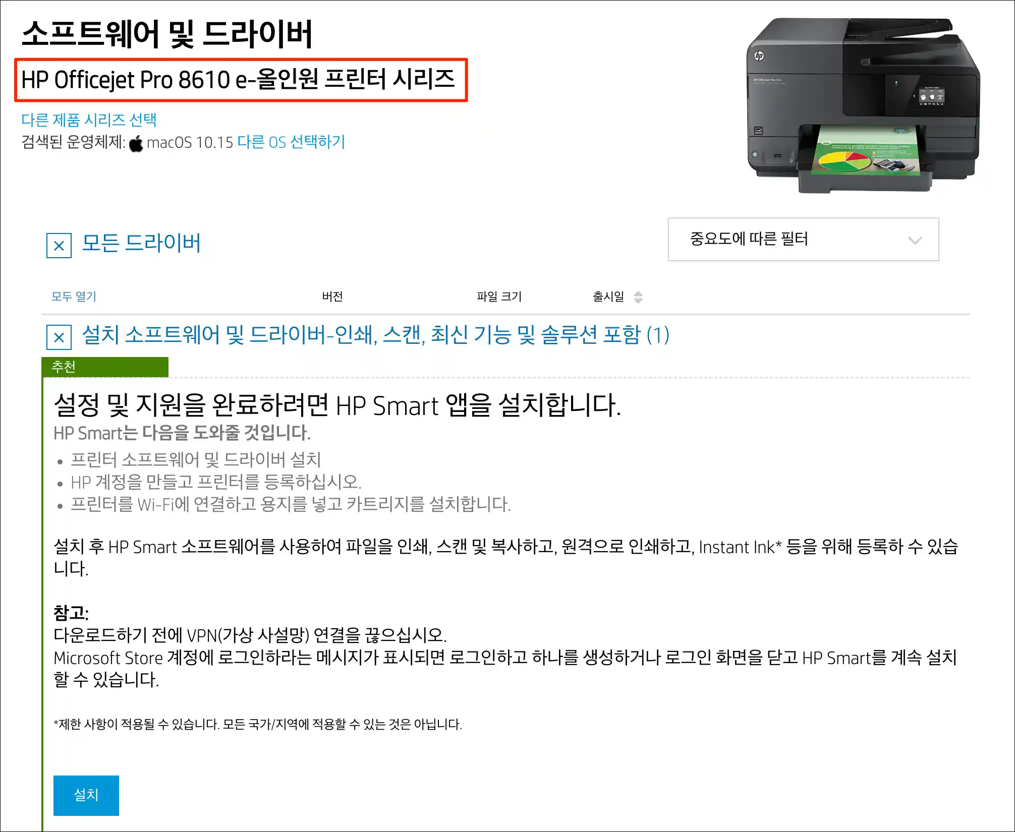 hp 프린터 드라이버 다운로드 8610