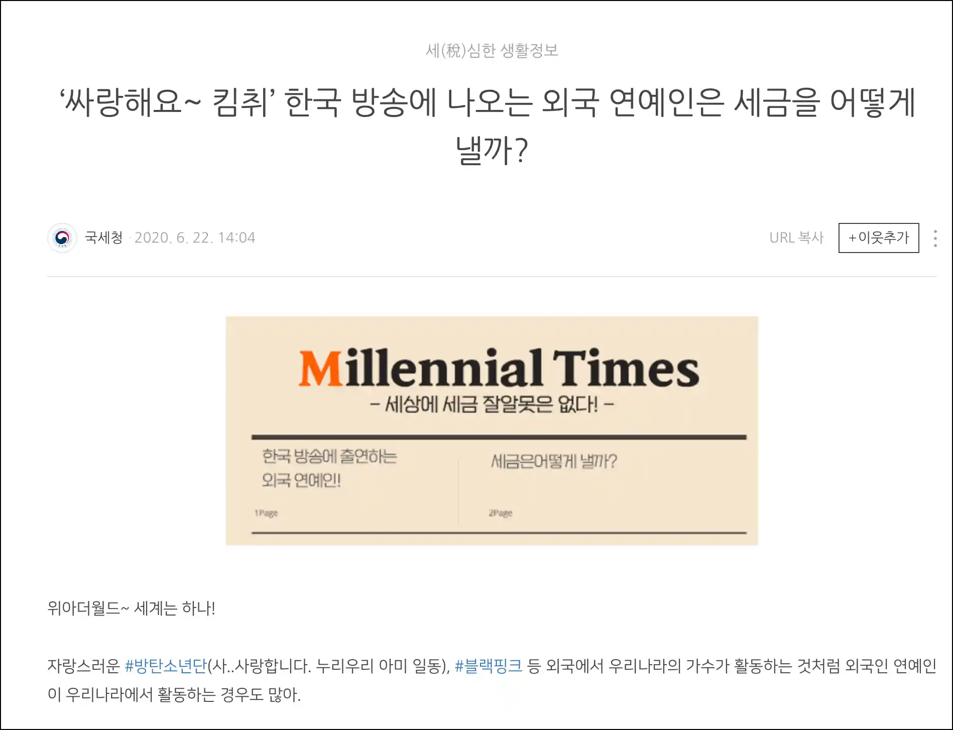 ‘싸랑해요~ 킴취’ 한국 방송에 나오는 외국 연예인은 세금을 어떻게 낼까?