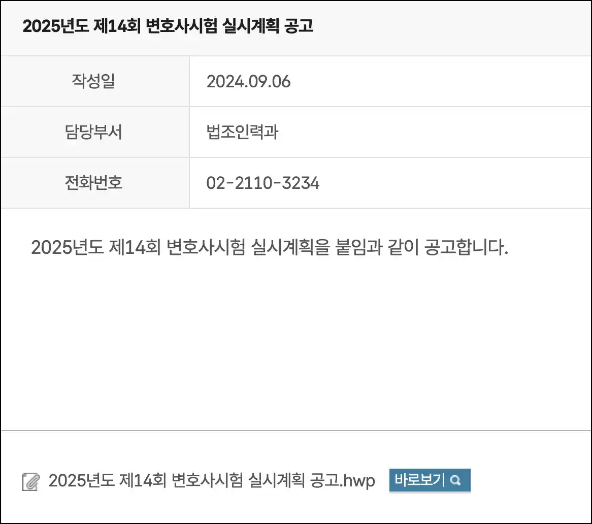 2025년도 제14회 변호사시험 실시계획이 공고되었습니다.