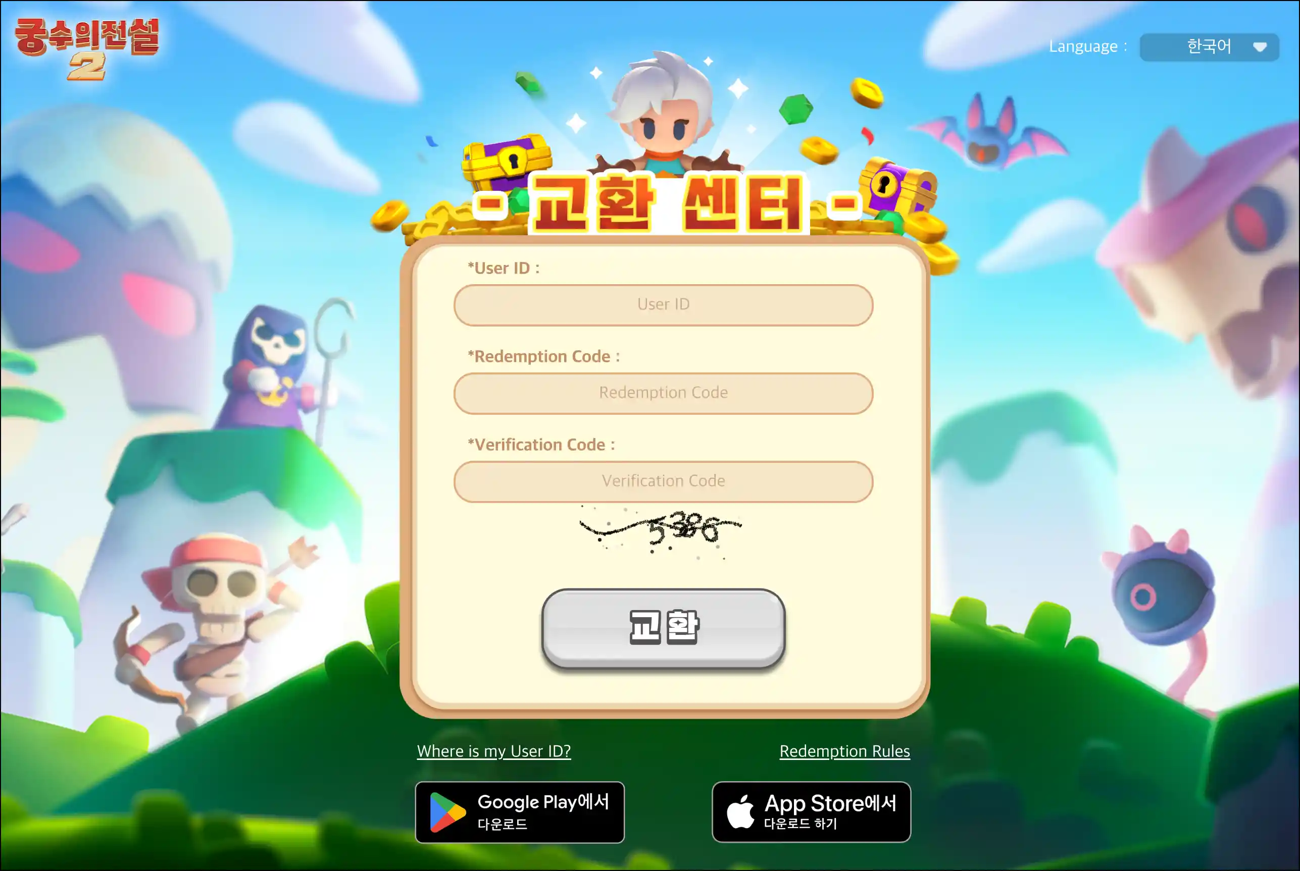 Archero 2의 공식 쿠폰 교환 센터입니다. 이 사이트를 통해 플레이어는 게임 내 보상을 받을 수 있는 쿠폰 코드를 입력하여 다양한 아이템을 획득할 수 있습니다. 사용자는 자신의 게임 ID와 쿠폰 코드를 입력하고, 제공된 인증 코드를 입력하여 보상을 받을 수 있습니다. 게임 ID는 게임 내 설정 메뉴에서 확인할 수 있습니다.