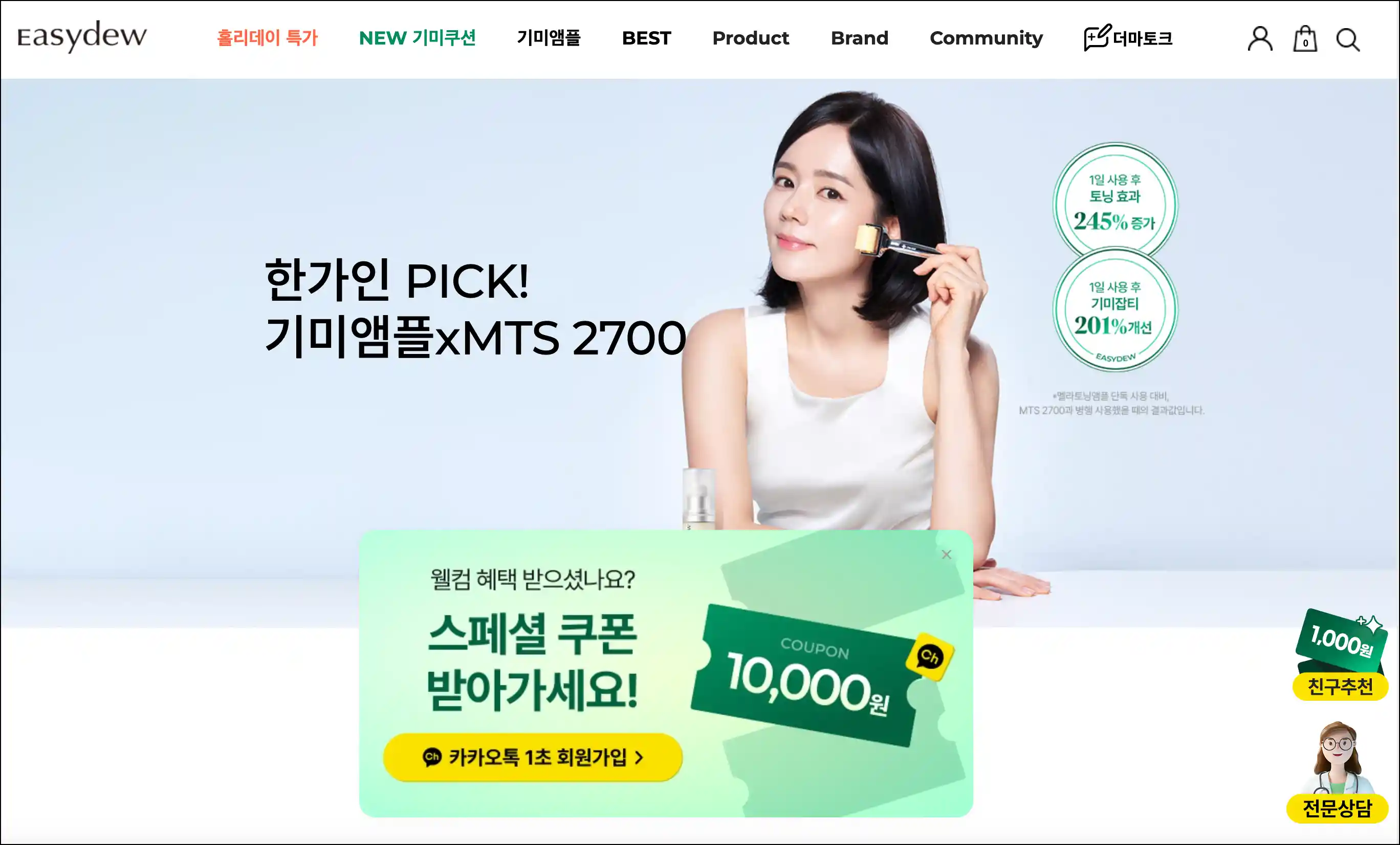 이지듀(Easydew)는 대웅제약의 30년 기술력을 바탕으로 세계 최초로 EGF(상피세포성장인자)를 상용화한 코스메슈티컬 전문 화장품 브랜드입니다.